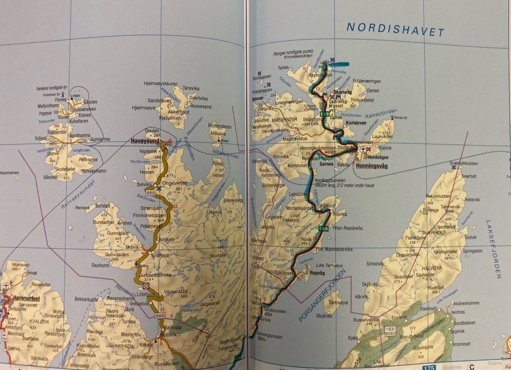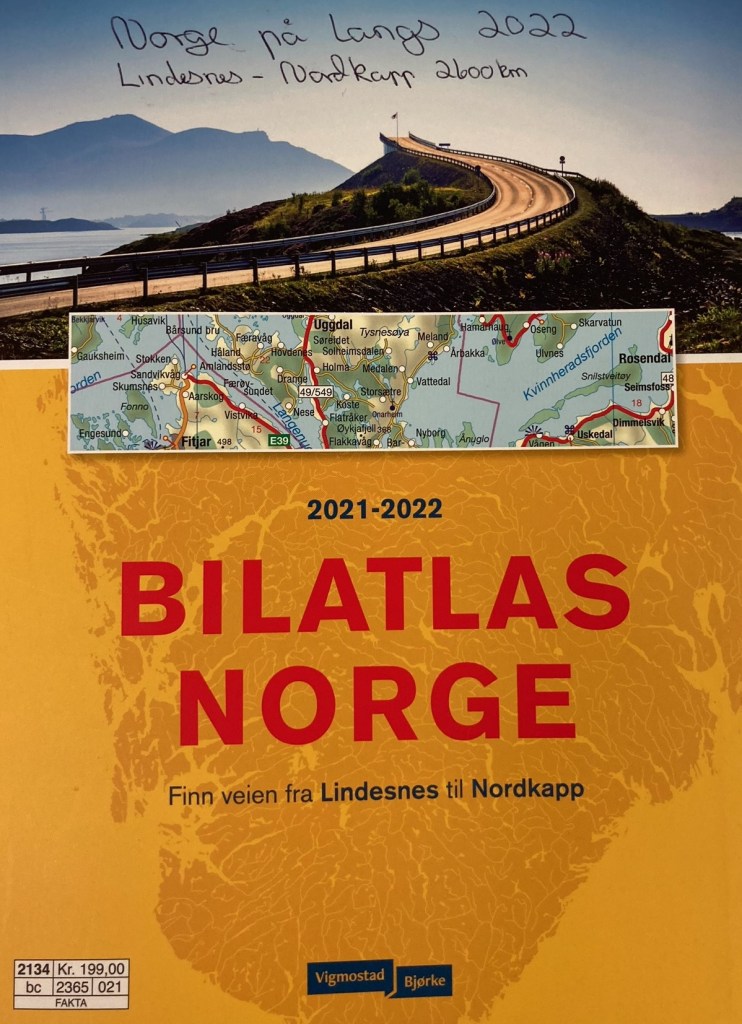 Får å komme et skritt videre kjøpte jeg denne veiboka. Den skal bli med på turen. Den veier noen gram, men tror jeg kan spare mye strøm med den. Så slipper jeg å gå inn på mobil og nettbrett hele tiden for å sjekke opp mot kartet. Nå har jeg tegnet inn hele ruta til Simen Holvik.