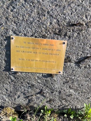 Like ved siden av teltet stod et lite minnesmerke. Det viste seg å være her 46 år gamle sersjant Amund Dahlsrud ble henretta ev tyskerene i aprildagene i 1940. Sliten og alene i soveposen rett ved siden merka jeg at det hadde gjort et dypt inntrykk på meg. Jeg var heldig som fikk leve i et fritt land.