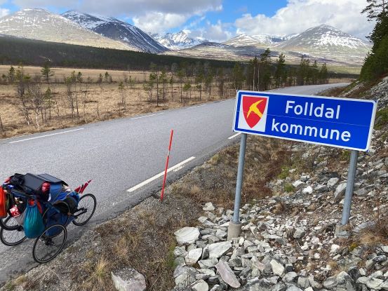 Kursen gikk videre mot Hjerkin. Sletter og slakt oppover. Tenkte jeg skulle få gjort innkjøp på Hjerkin men fant ikke sentrum. Slukøret gikk ferden nordover over Dovre. Heldigvis hadde jeg en god del kakerester igjen. Jeg rullet greit over Dovre med en fantastisk 360 graders utsikt. Jeg hadde passert 1/3 av distansen til Nordkapp og med den tanken i hodet gikk milene unna nedover bakkene til Driva og Oppdal. Godt å komme ned i litt varme etter flere dager i et forholdvis kjølig værtype med temperaturer under null om natten..