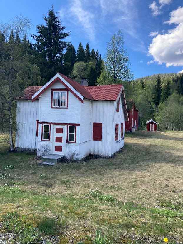 Så gikk turen videre oppover Trøndelag. Allerede rett nord for Stjørdal ble veien så svingete og trafikken så stor at jeg var ganske nervøs et langt stykke før det normaliserte seg igjen. Smal vei, ingen veiskulder og flere meter rett ned mot sjøen. Ikke lett når campingbiler og vogntog stanget på. Det lille koselige huset symboliserer en svunnen tid som er regelrett overkjørt av det moderne samfunn. Små hus, lite dyrket mark og kanskje liten skog og. Ikke mye å leve av lenger. Og så en gang for mange år siden lå de like nær veien, bare det at trafikken var ikke stor. Nå drønner vogntog forbi i et sett. Det ble flere og flere av disse småstuene oppover Nord-Trøndelag og Troms.