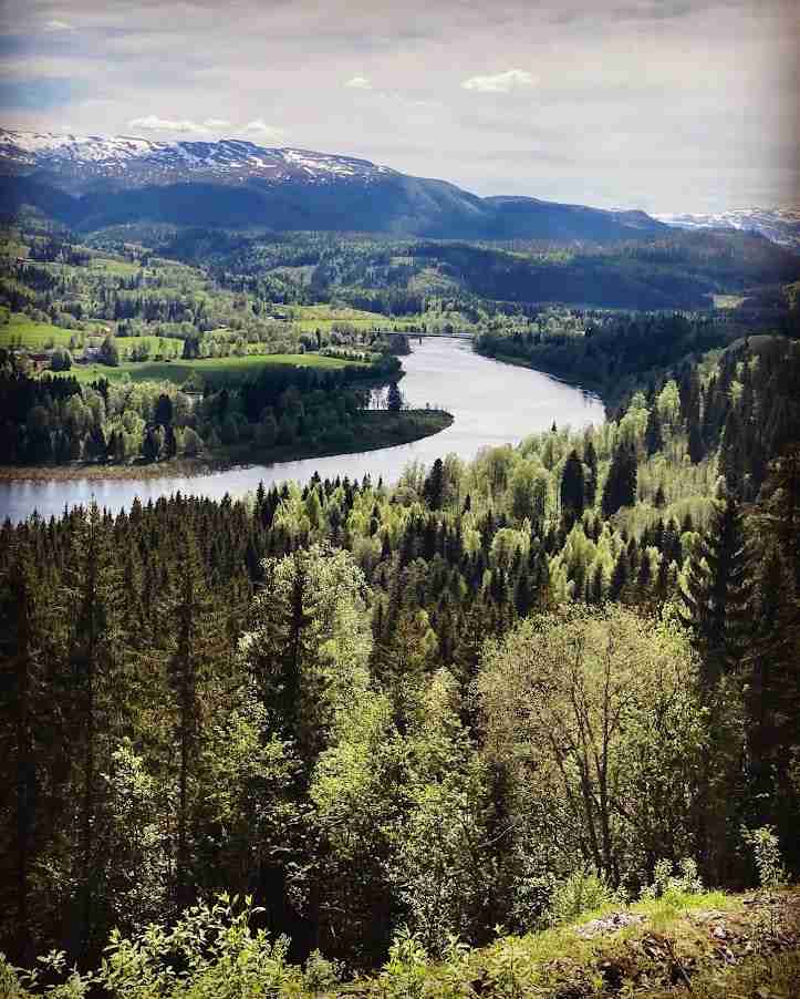 Ferden videre gikk via Steinkjer og opp langs Snåsavannet (som jeg trodde aldri skulle ta slutt) og etter hvert flere mil langs lakseelven Namsen. Naturen ble finere og finere jo mer nord jeg kom.