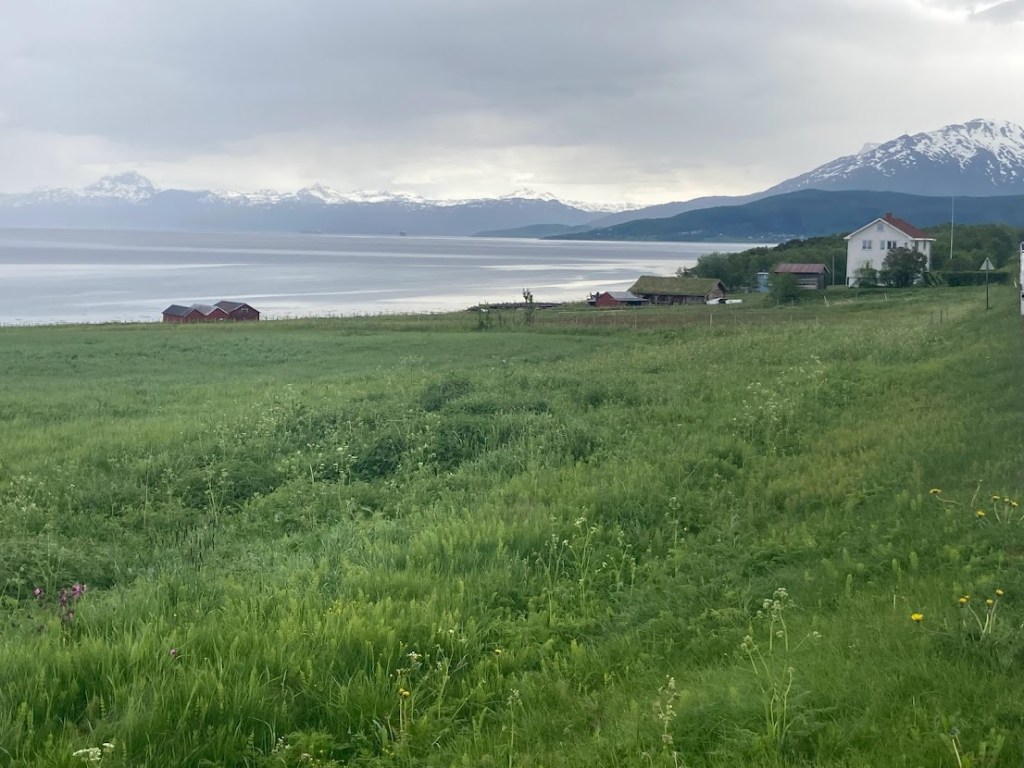 Naturen på veien ut mot Innhav var stor. Og gjestfriheten i Innhavet var like stor. Hadde en fin halvtime i hagen til denne familien jeg løp forbi.