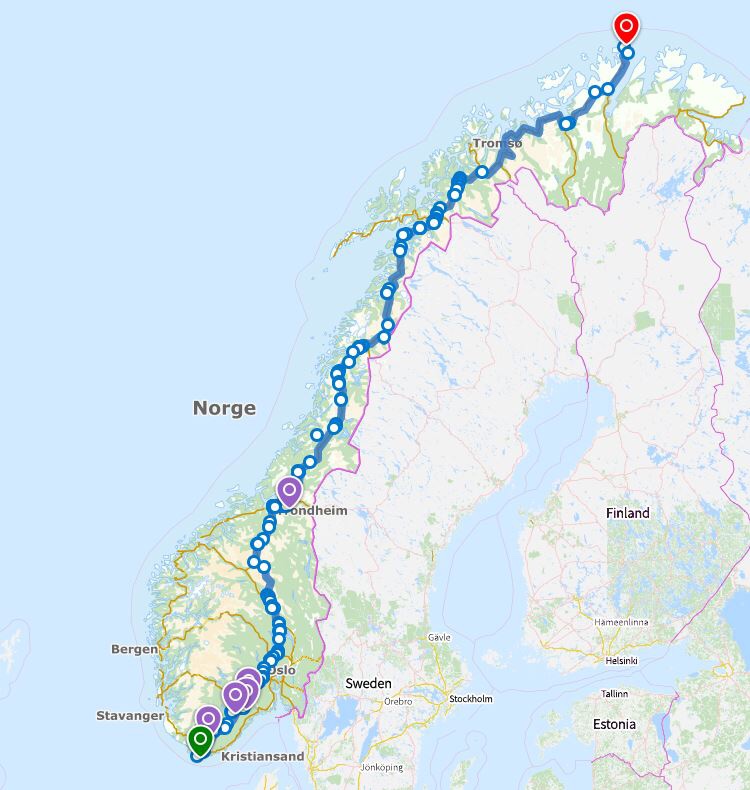 Starten går 8. mai 2022 fra Lindesnes fyr. Distanse 2526 km ifølge veikart. Jeg løper «self-supported» med vogn og bagasje på landeveien og håper å ankomme Nordkapp platået 19.juni. Dvs 6 uker med en gjennomsnitt distanse på 60 km om dagen.